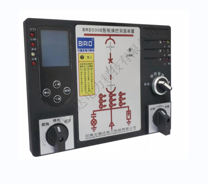 我公司生产的BRD500E系列智能操控测温装置是针对3~35kV户内开关柜设计研制得新一代产品,适用于中置柜、手车柜、固定柜、环网柜等多种开关柜。该产品功能强大:有带电显示、温湿度数字显示、自动加热 除湿控制,断器分合闸状态指示;储能、接地开关指示;小车位置指示;一次回路模拟图及分合闸闪烁指示:语音防误提示:RS485通讯接口功能,触点温度检测功能等。